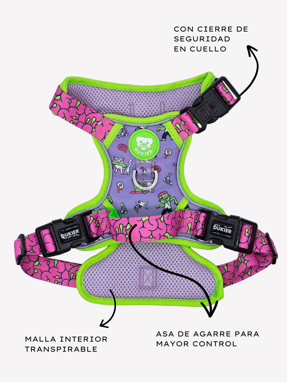 - Anti-Zieh-Geschirr. Sowohl das Anti-Zieh-Design als auch die widerstandsfähigen Materialien sind ideal für die wildesten Spaziergänge. Darüber hinaus ermöglicht der zusätzliche D-Ring auf der Brust das Anbringen der Leine, um das Ziehen zu kontrollieren.