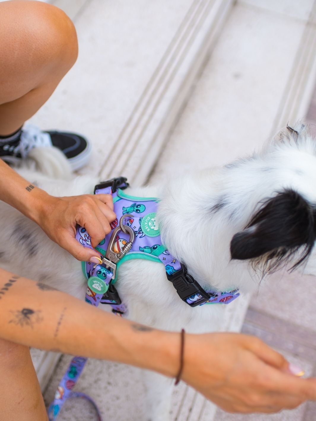 Ihr Anti-Zieh-Design und die Festigkeit ihrer Materialien machen sie zum perfekten Geschirr für die wildesten Spaziergänge.