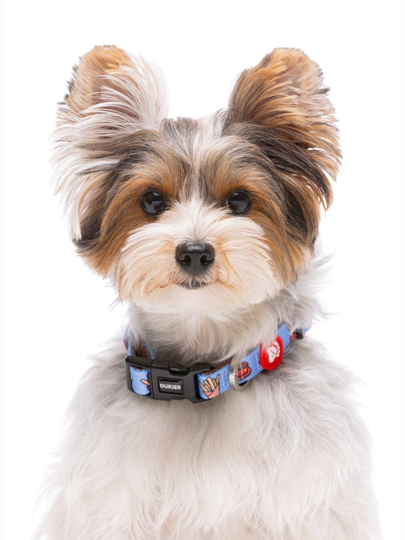 Me encantó este collar desde que lo vi por su diseño tan gracioso con churros y tazas de chocolate, ¡es imposible no sonreír! Es el segundo collar de Dukier que compro para mi perro. Y se ve que han mejorado los materiales desde el anterior. Por cierto el anterior ya tiene 5 años y sigue en muy buenas condiciones.