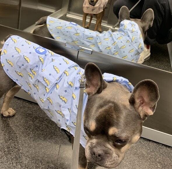 Es un chubasquero ligero y duradero, el material es de alta calidad y lo compré a un precio económico. Recomiendo elegir una talla más grande de la que usa el perro normalmente. El diseño es monísimo.