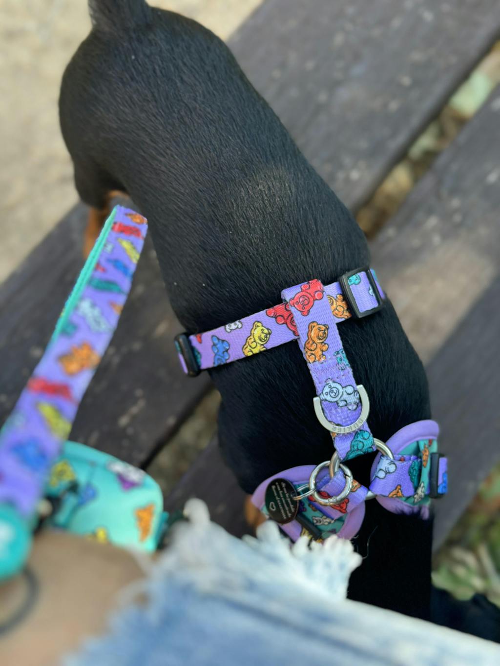 Some dogs may find this harness looser in the chest than the Reversible Harness. If your dog has a small chest width, it may fit a little smaller.