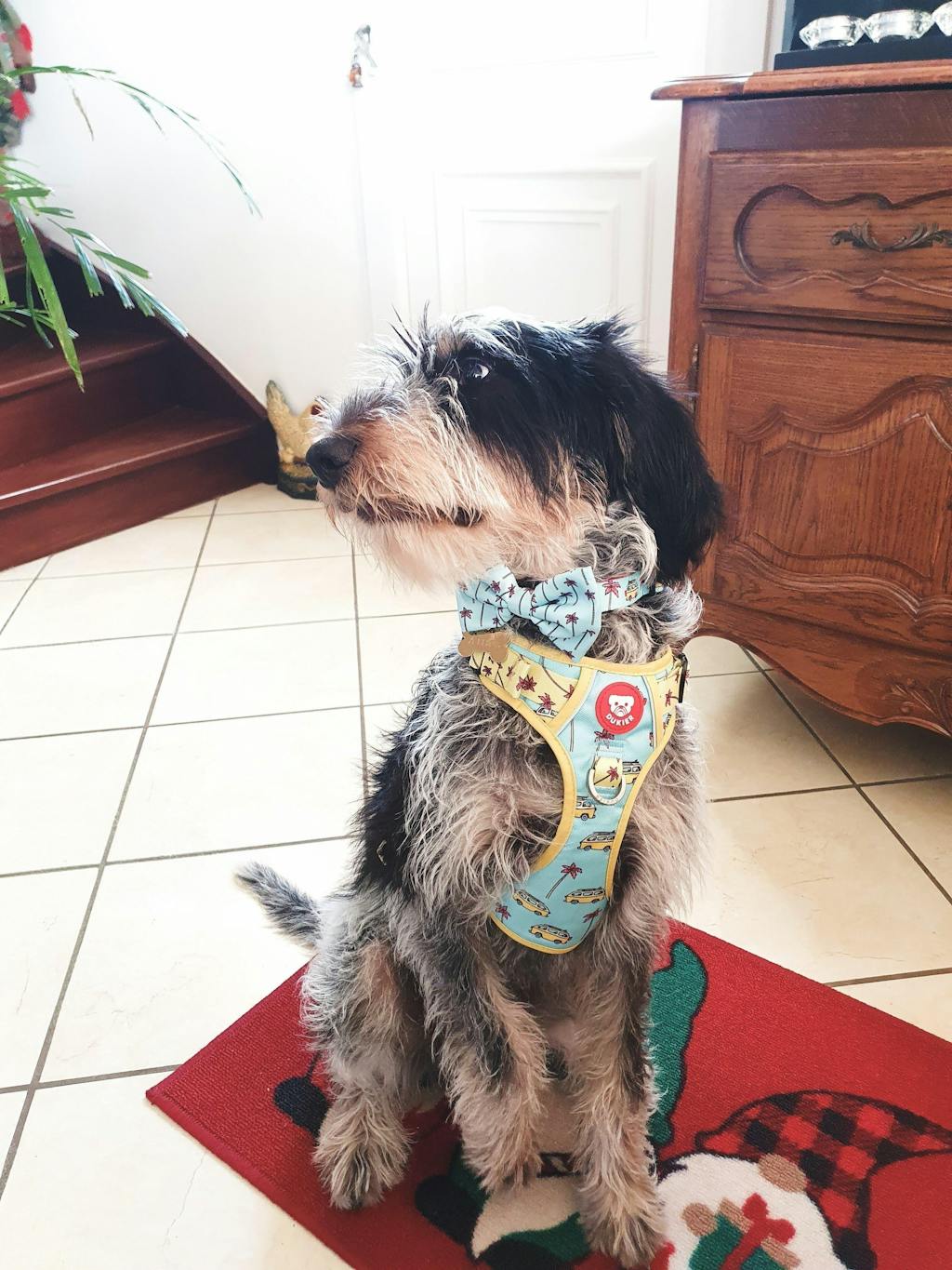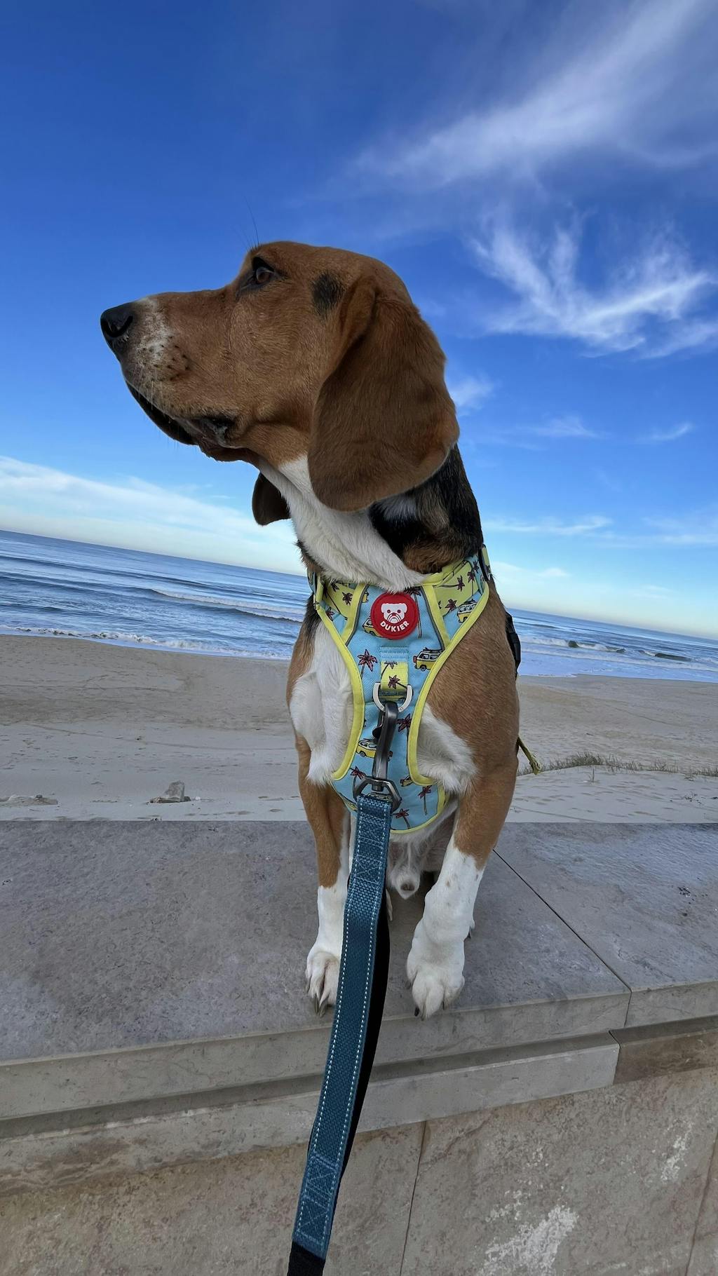 Très jolie harnais de très bonne qualité, taille parfaitement bien. Le gros plus, pour la première fois mon Athos, griffon bleu de gascogne de 6 mois, n'a pas tiré en ballade grâce au harnais anti traction. Un vrai bonheur ! Je recommande fortement.