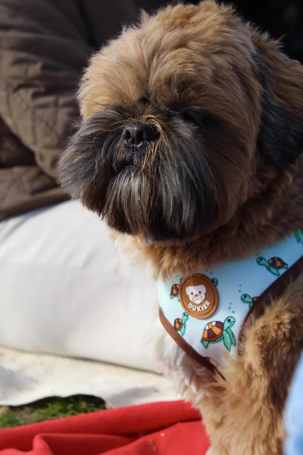Parfait ! le maintient est trés bon, j'adore les imprimés, mon petit carlin de passe pas inaperçu avec ce joli harnais !