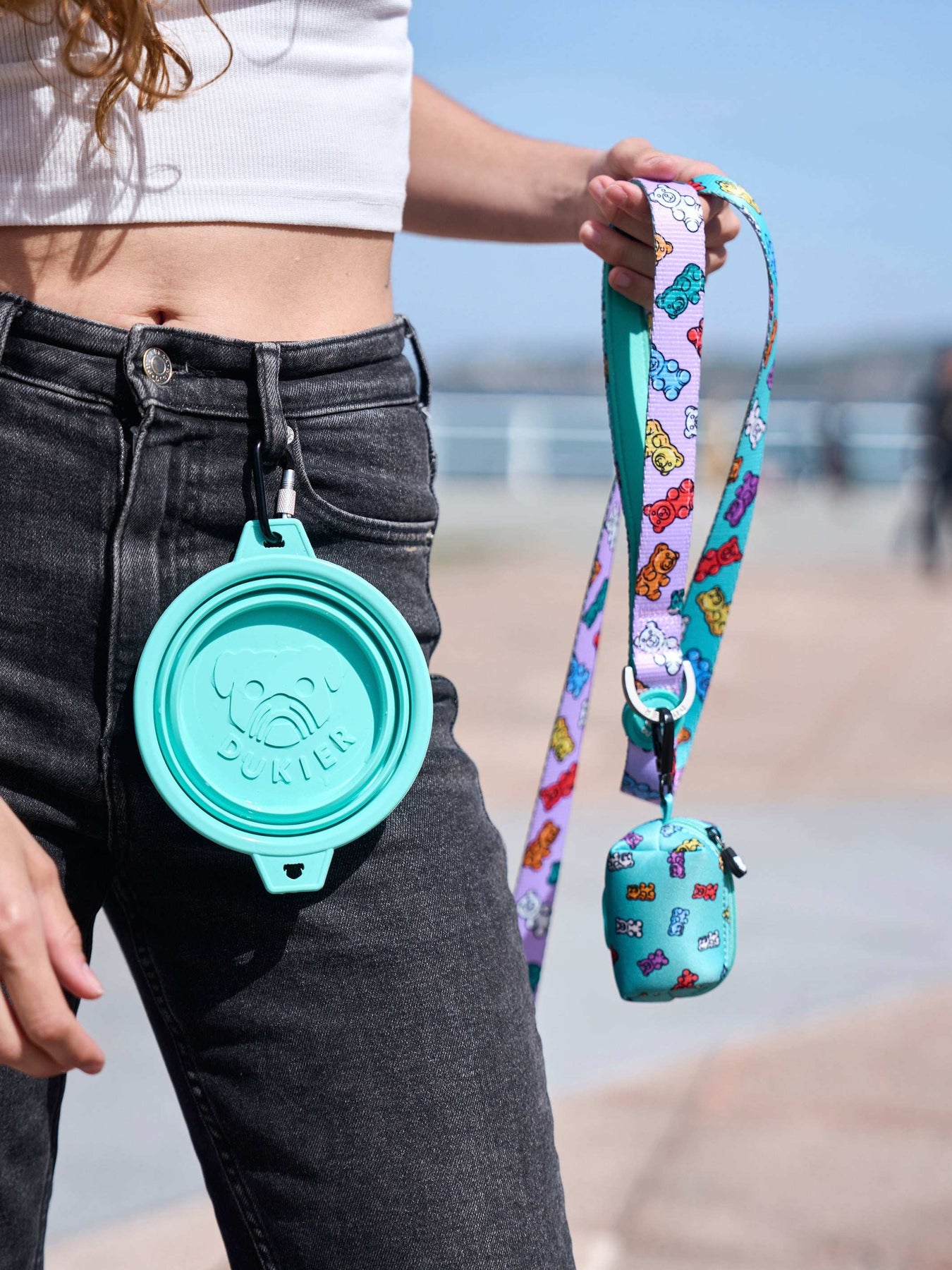These doggy poop bag holders are super light and practical! They are made of neoprene and have a rubber opening so you can take out the bags one by one!.