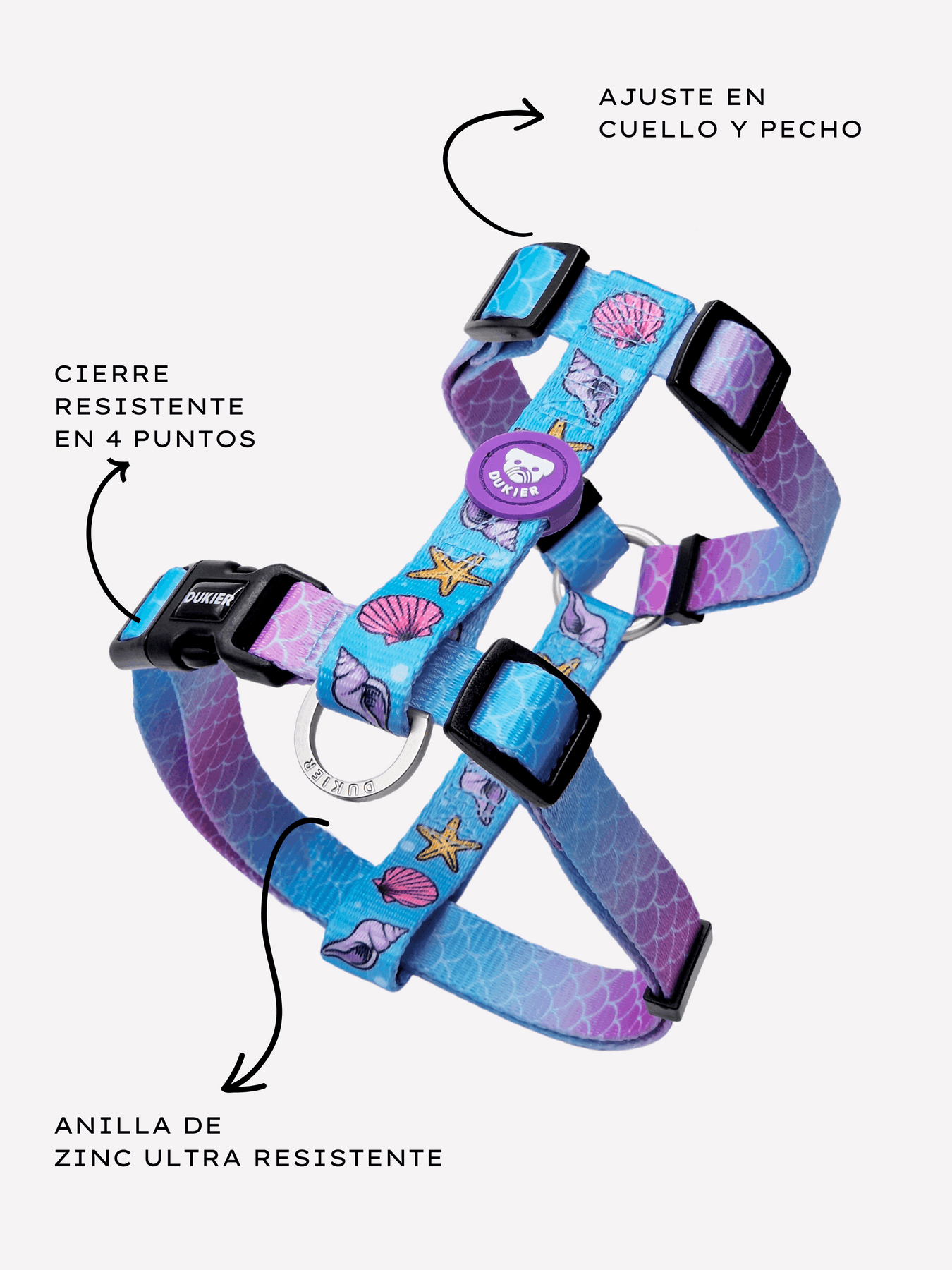 Este arnés para perro súper cómodo está creado con materiales blanditos y duraderos. Además, se puede ajustar perfectamente al tamaño de tu perro. Para tí, humano, también hay premio, la tarea de ponerle y quitarle el arnés es súper sencilla gracias a su forma de H, a la posición del cierre y de las hebillas.