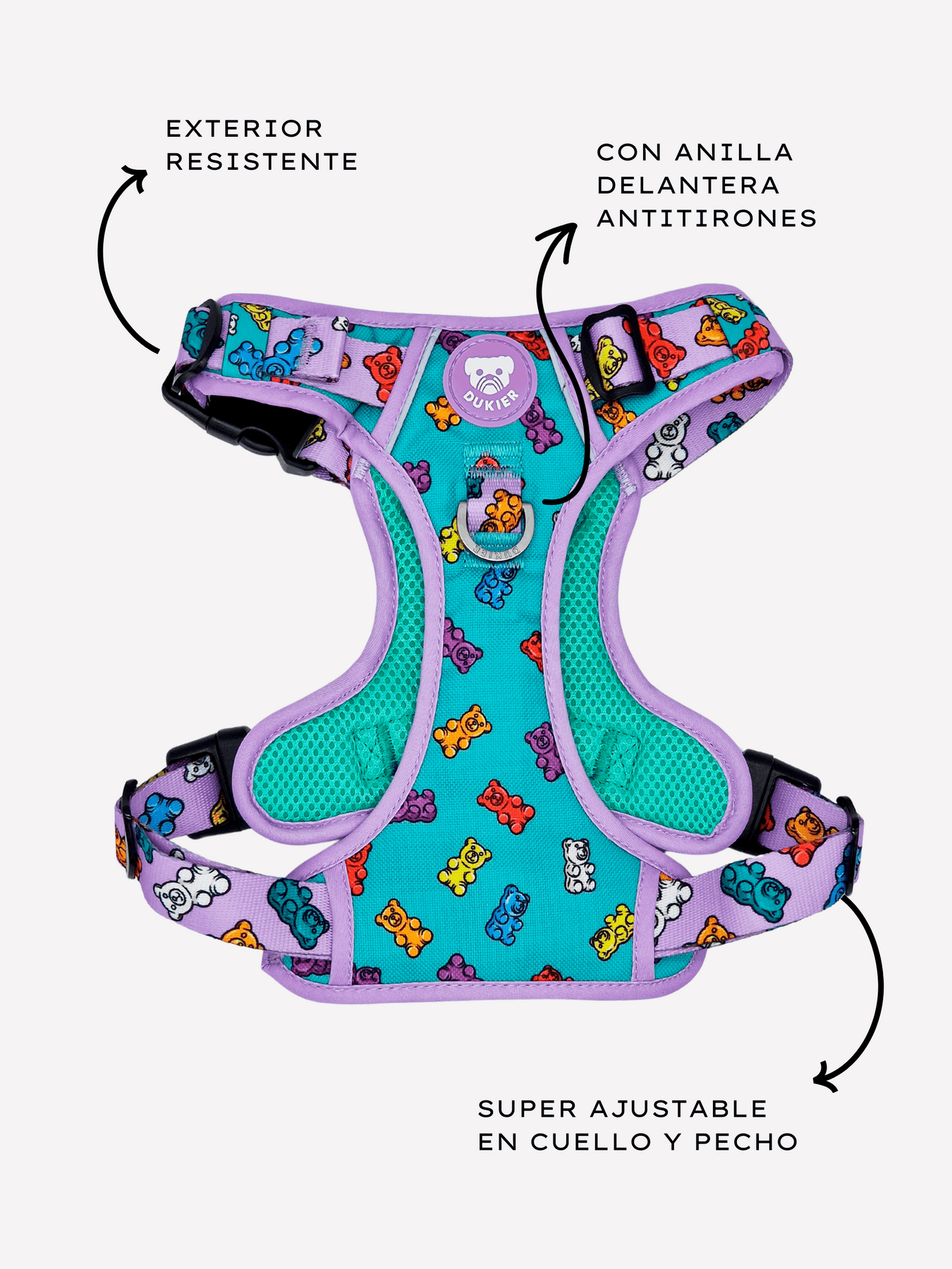 ¡NUEVO ARNÉS TRAIL GUMMY BEARS! El arnés para que los perros más aventureros y más fuertes también sean los más molones del parque. ¡Estos arneses están creados para aguantarlo todo y ajustarse al 100% al tamaño de nuestro peludo!.