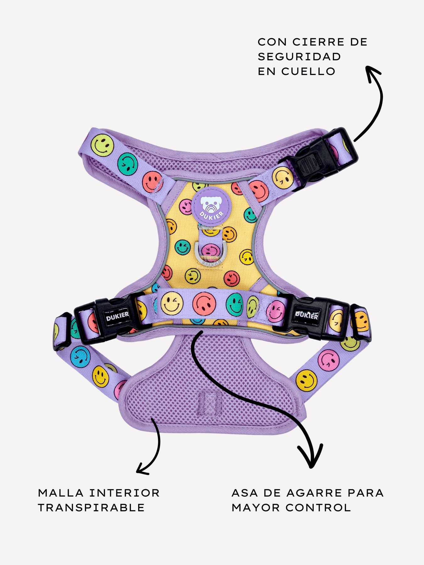 - Anilla extra en D en pecho para anclar correa y evitar cualquier tirón.