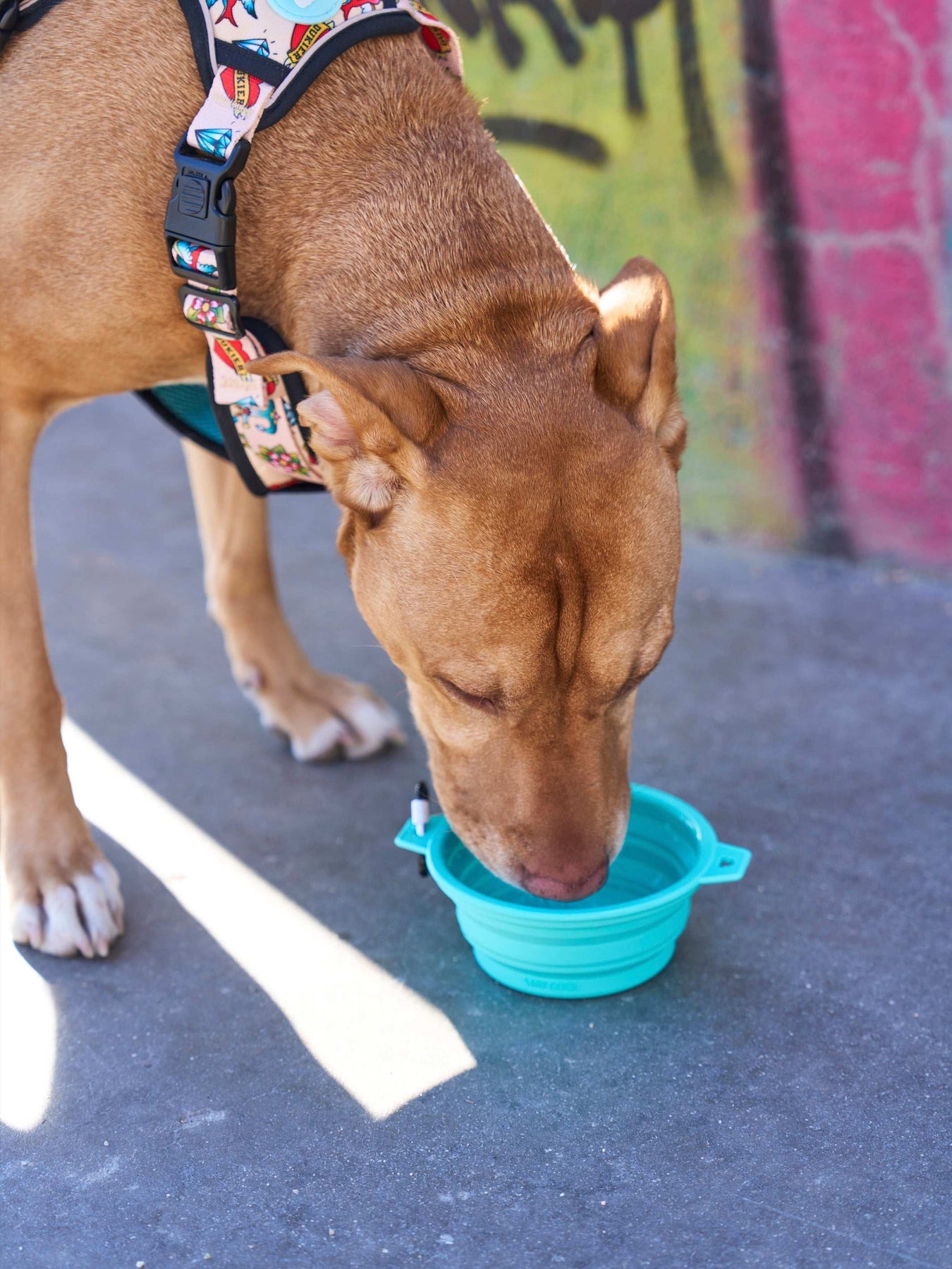 Lleva siempre contigo nuestro bebedero portátil, perfecto para los viajes con tu perro y los paseos más largos.  Nuestro bebedero hecho en materiales super resistentes puede plegarse totalmente e incluye un mosquetón para que lo guardes y lleves donde quieras! ¡Combínalo con tu colección favorita y que tu perrito sea el más cool del parque!