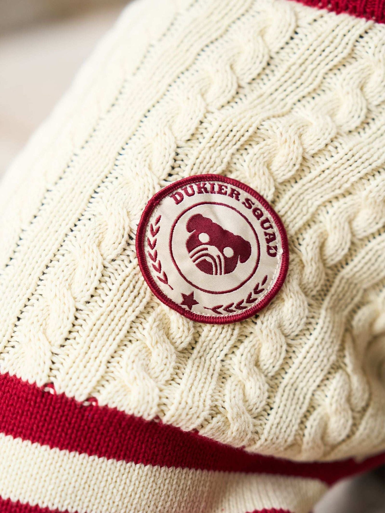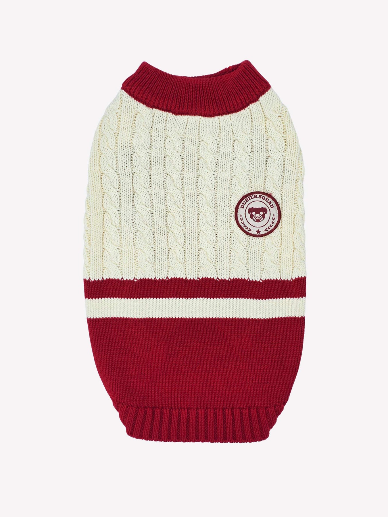 Tu perro también merece ir cómodo, calentito y con el mejor estilo cuando bajan las temperaturas. Este jersey combina estilo clásico con comodidad absoluta. Inspirado en los jerseys colegiales más icónicos, este diseño en color y crema con trenzado en punto y parche bordado le dará un look elegante y divertido a cada paseo, además de la mayor comodidad y calidez.