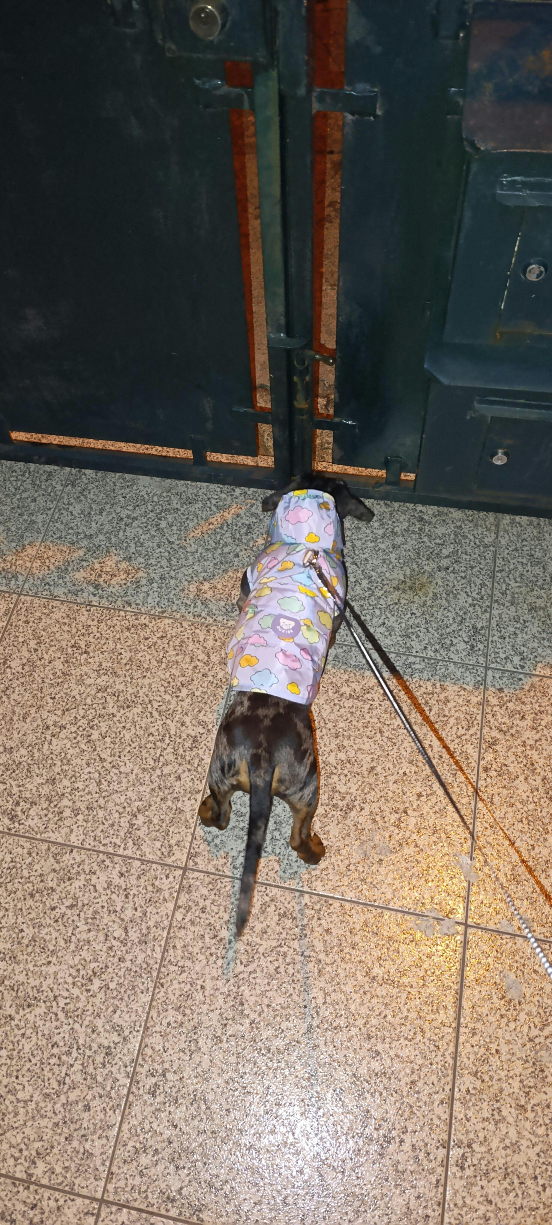 Me encanta el chubasquero y cumple su función estupendamente,pero mi perra tiene 7 meses y va a necesitar tallas extra grandes, estaría genial hacer más tamaños para los más gigantes,