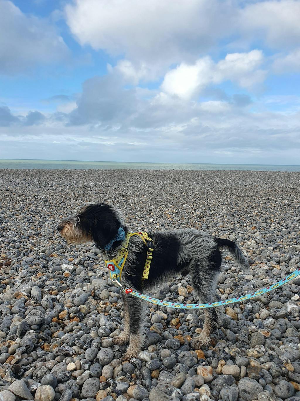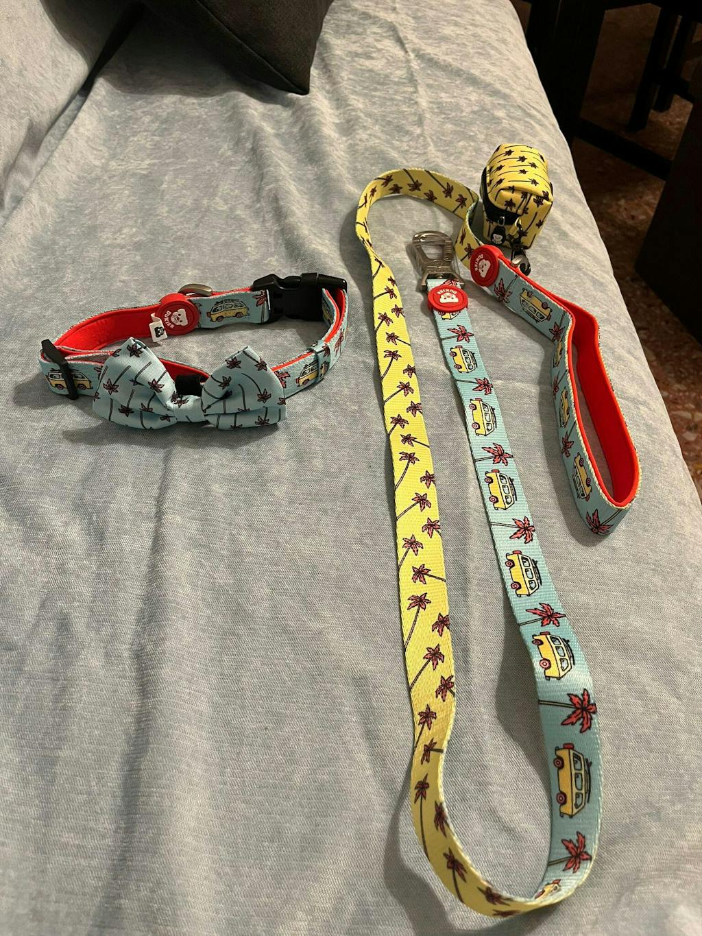 La laisse à une longueur parfaite pour les ballades, un design assortie à la tenue harnais / collier / noeud 🦋, et un gros point positif pour le mousqueton sécurité ainsi que la poignée confortable.