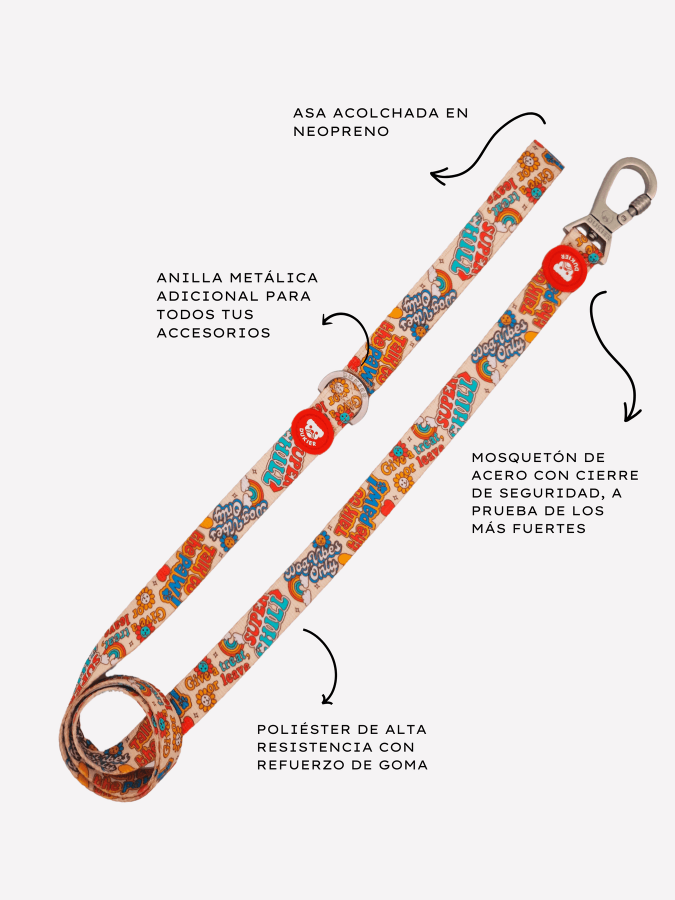 Il moschettone in dotazione è robusto come un chiodo, quindi il cane non riuscirà a scappare nemmeno se lo desidera. Con i suoi disegni su ogni lato, sarà l'invidia del parco. Questo guinzaglio non si dimentica nemmeno di voi, e abbiamo rivestito l'impugnatura in neoprene imbottito per evitare che vi facciate male.