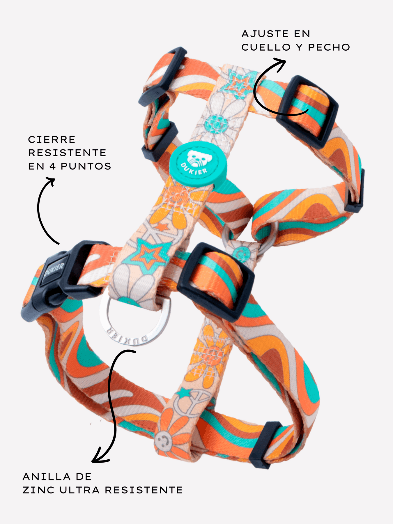 Nuestro arnés clásico de tiras es súper cómodo y está creado con materiales blanditos y duraderos. Además, se puede ajustar perfectamente al tamaño de tu perro. Para ti, humano, también hay premio, la tarea de ponerle y quitarle el arnés es súper sencilla gracias a su forma de H, a la posición del cierre y de las hebillas.