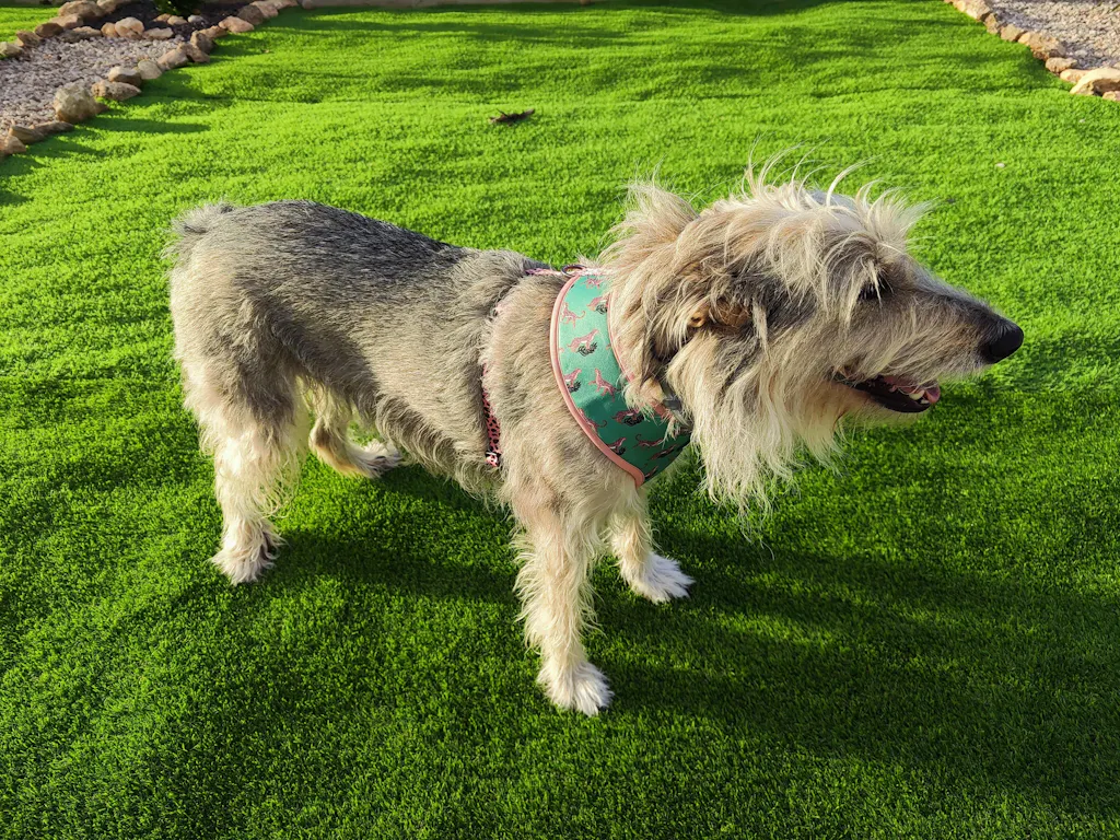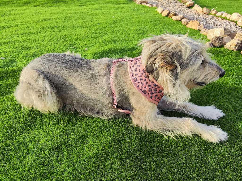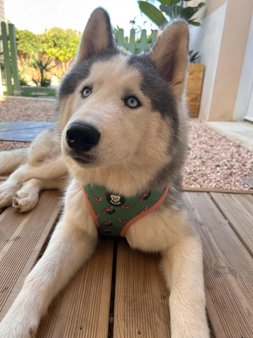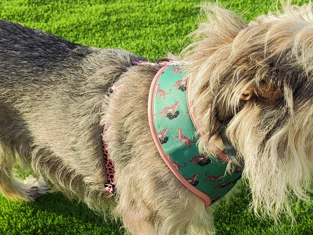 El arnés es de excelente calidad y reversible con un diseño precioso. A mí perra le queda genial. Además es suave, cómodo y fácil de usar.