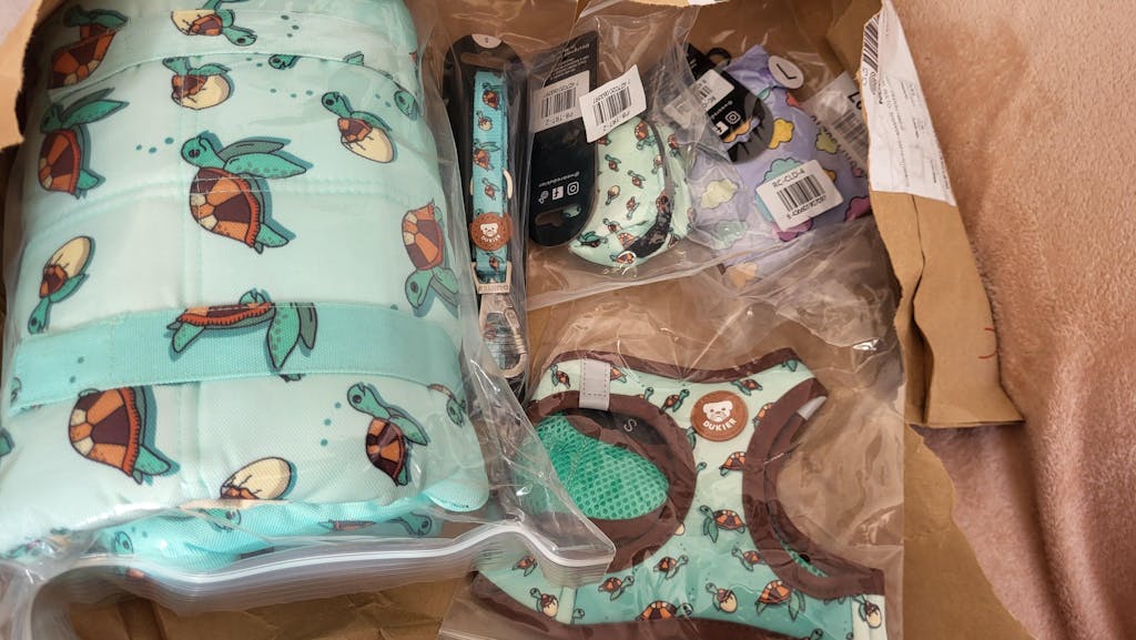Fica super bem em conjunto com o arnês. Parece ser resistente.