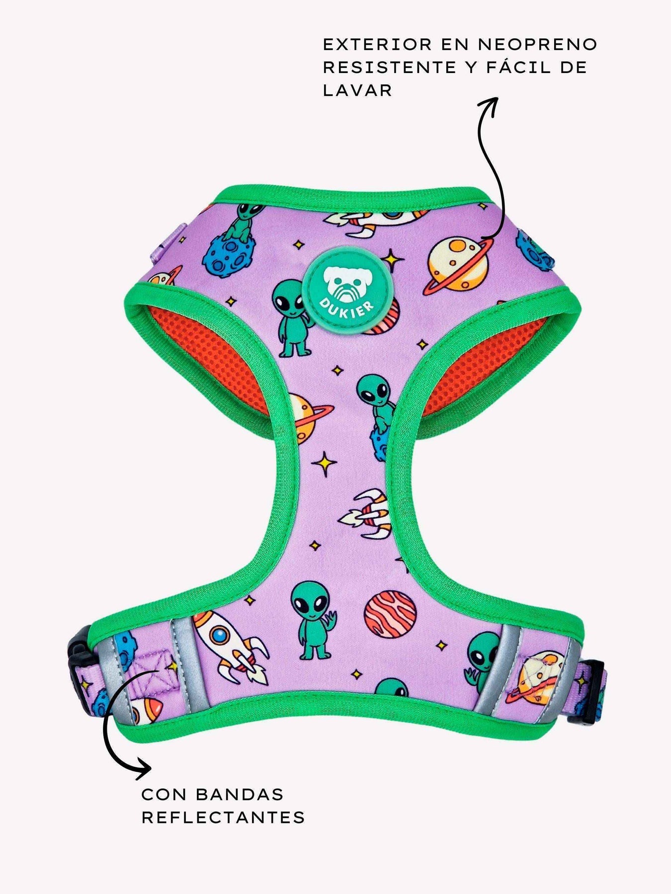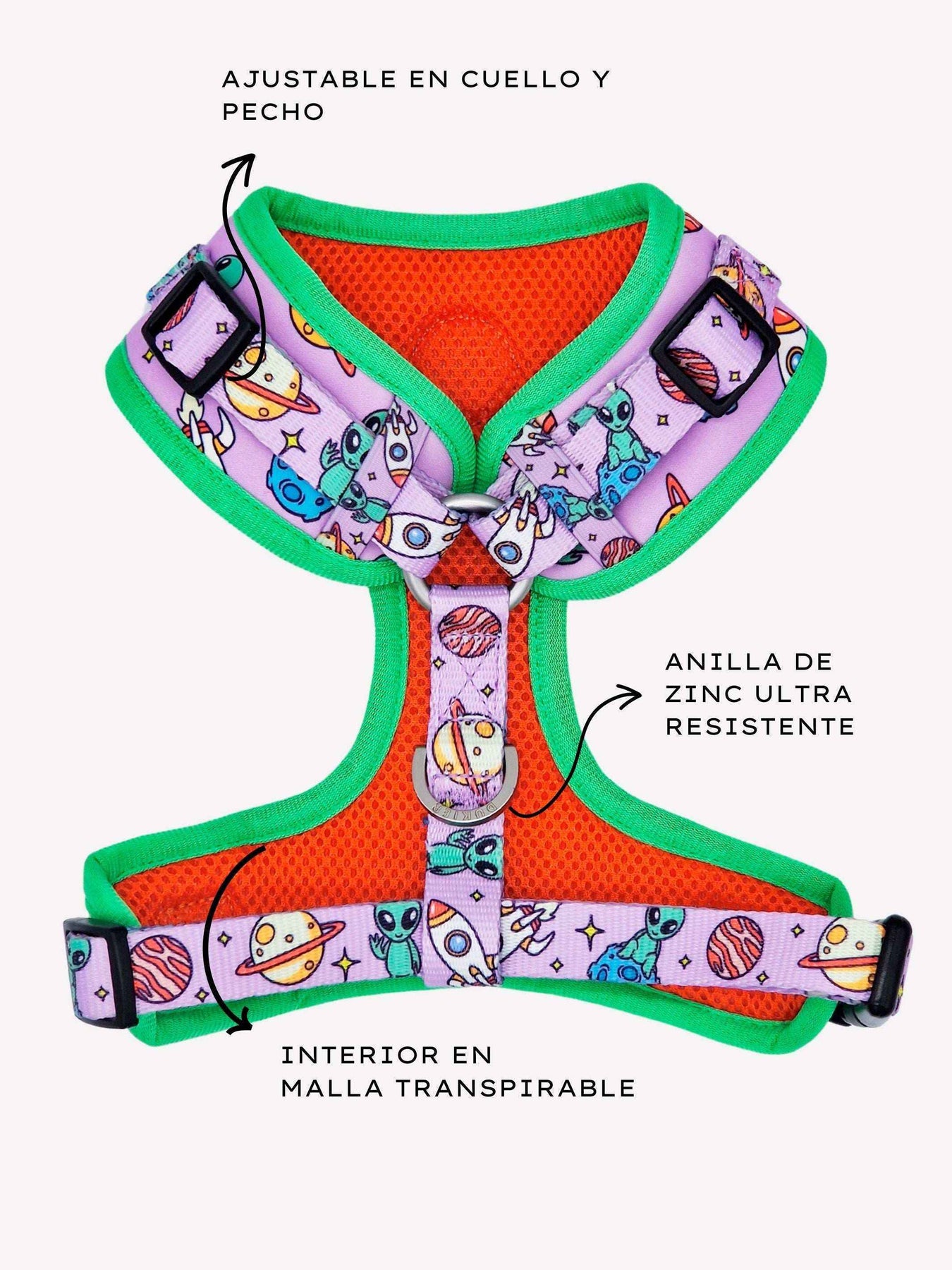 Este arnês ajusta-se perfeitamente ao corpo do seu cão. É super confortável e ajusta-se tanto no pescoço como no peito. O tecido é de neoprene no exterior e de malha respirável no interior, para que o seu cão se sinta confortável e seguro.