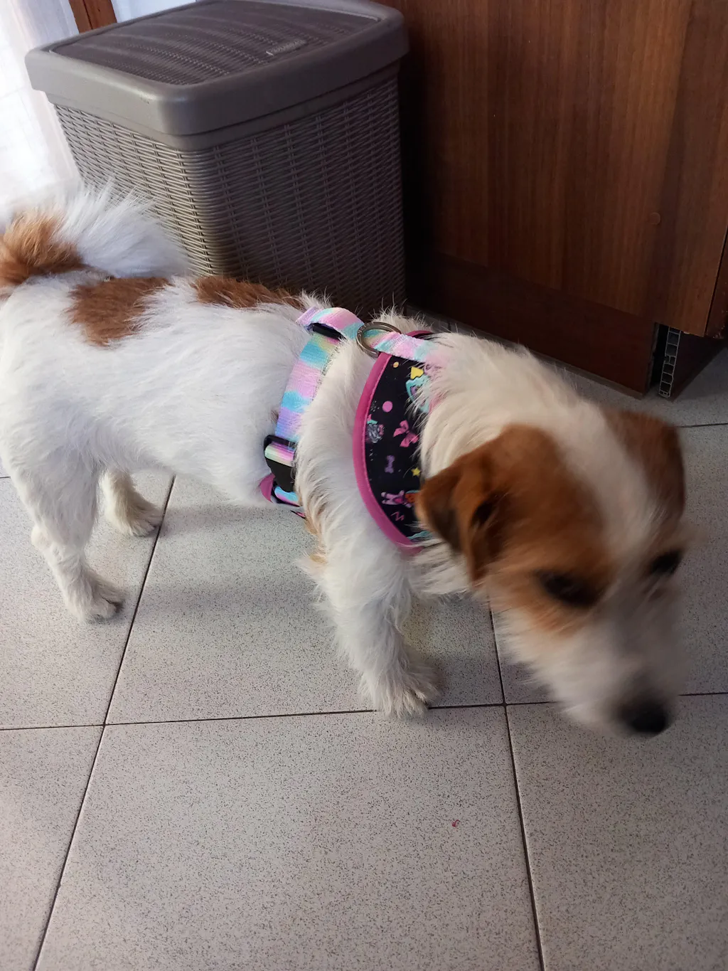 El arnés reversible le queda genial. Está guapísima. Muy buena calidad. Envío rápido.