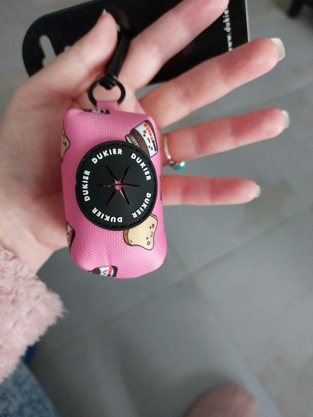 Severine F. Le distributeur de sac à 💩 est très jolie, il s'accroche à la laisse c'est très pratique on ne l'oublie plus